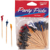 Our Flag Picks are the perfect addition to any patriotic celebration! Coming in a case of 600, each case contains 12 packages of 50 picks, giving you plenty of decorations for your event. Each pick measures 1.469" x 2.5" and is made from heavyweight paper and wood, making them durable and long-lasting. Place them in a vase or cup on your table and they'll look great while they help your guests grab small-bite finger food. Add them to hamburgers, hot dogs, and other grilled items for a patriotic salute. With our low prices and generous quantity, these flag picks are the perfect way to add a festive look to your 4th of July, Memorial Day, or Veteran's Day celebrations!