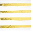 Make your special occasion sparkle with our White and Gold Foil Striped Dinner Plates. This 96-count package of heavyweight paperboard plates is coated with a dazzling gold foil stripe that's sure to dazzle your guests. Each plate measures 8.75" in diameter and is perfect for serving entrees, salads, desserts, and more. With 8 plates per package and 12 packages per case, you'll have plenty to go around. The sophisticated design is sure to take your table setting to the next level, making it a charming addition to Solid Color Party Tableware and Accessories.