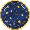 Bring a touch of the night sky to your next event with our Starry Night Dessert Plates! These 6.75" heavyweight paperboard plates feature a navy, yellow, and silver theme with moons and stars for a celestial atmosphere. Sold in packs of 8 with 12 packages per case, you'll receive 96 plates in total. These disposable plates are perfect for appetizers or desserts and coordinate with all Starry Night party supplies. With our discount pricing on bulk quantities, our Starry Night Dessert Plates are a must-have for any party planner, catering service, or home party planner. Add a special touch to your next gathering with our Starry Night Dessert Plates.