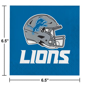 Cheer on your favorite football team with these Detroit Lions Napkins! Perfect for tailgates, pregame meals, and postgame celebrations, these 2-ply tissue napkins measure 6.5 Inches x 6.5 Inches and feature a large Lions helmet in the center with the text "Lions" beneath it. Mix and match with other Detroit Lions party supplies for a great football season. With a package of 16 napkins, you'll have plenty to go around. Our store brings you quality and discount pricing, making these Detroit Lions Luncheon Napkins perfect for event planners, caterers, and home hostesses alike. Get ready to cheer on the Detroit Lions with these absorbent and stylish napkins!