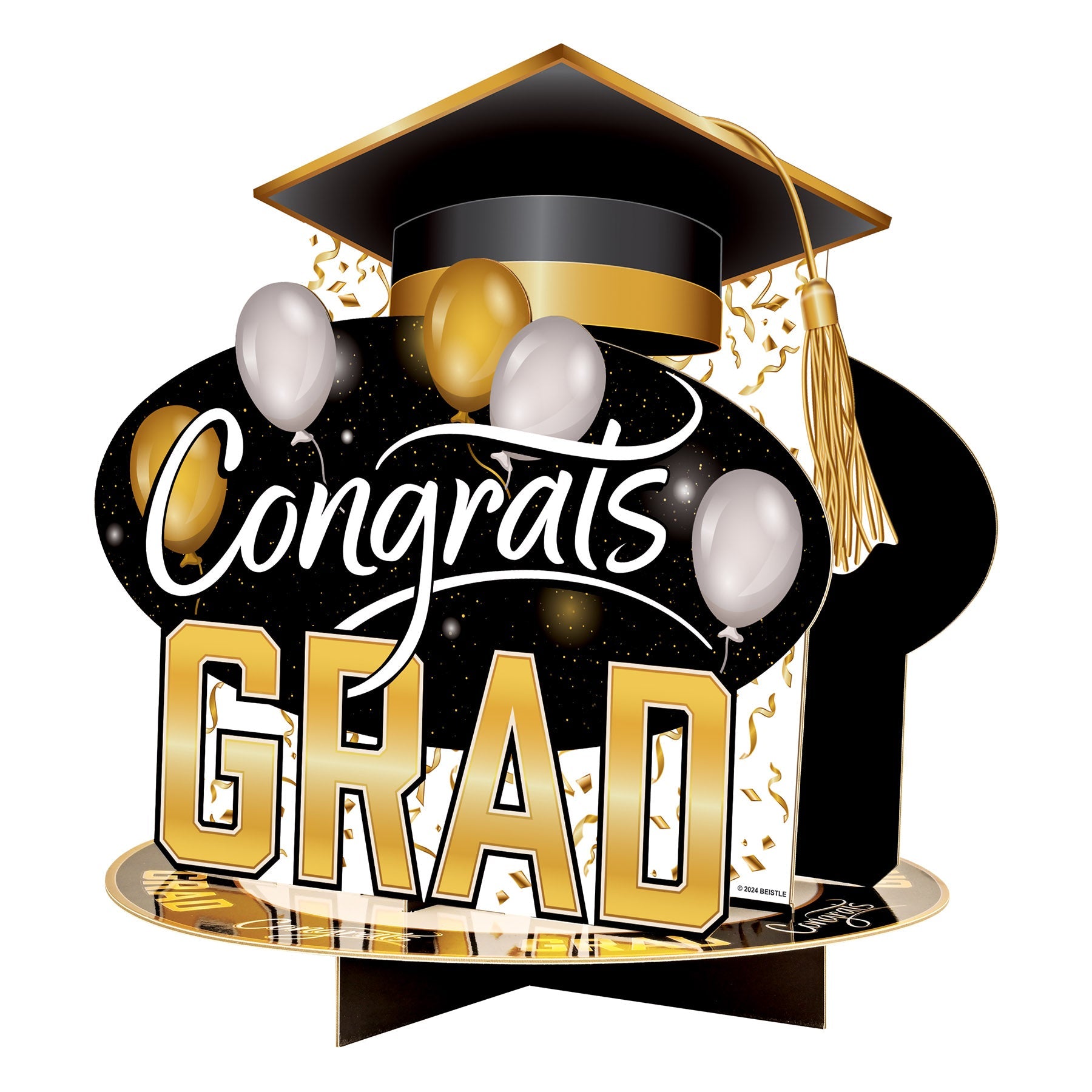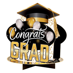 Our 3-D Congrats Grad Centerpiece is the perfect addition to your graduation events. These centerpieces are ideal for creating a festive atmosphere. With dimensions of 11 inch and packaging of 1/package, each case includes 12 packages, making it easy to cater to gatherings of any size. These versatile items enhance the ambiance of any celebration. Assembly required
