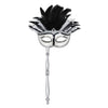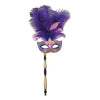 Feathered Mardi Gras Costume Mask with Stick - Bulk 12 Pack
