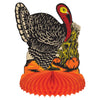 The 11-inch Scarecrow with Tissue Cornshock Centerpiece adds charm to any Thanksgiving or fall celebration. Made in the USA! This item features a cardstock scarecrow with a honeycomb tissue cornshock, creating a festive look for tables and displays. Assembly is quick—just unfold and set up. This versatile centerpiece brings warmth and seasonal spirit to your autumn decor.