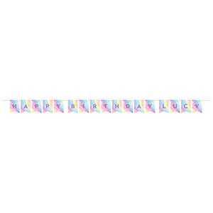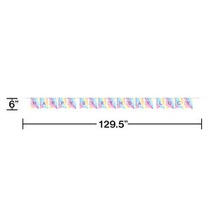 Celebrate your special day in style with our Tie Dye Party Happy Birthday Banner! This fun and colorful banner features 4.5" x 6" pennants with tie dye and letter designs, perfect for a tie dye or 60s-themed party. The 129.5" ribbon makes it easy to hang above the party space for a fun and festive decoration. Sold one per package, this banner is sure to make your celebration memorable. Coordinate with Candy Pink or Luscious Lavender tableware for a complete look. Get your Tie Dye Party Happy Birthday Banner today and make your party one to remember!