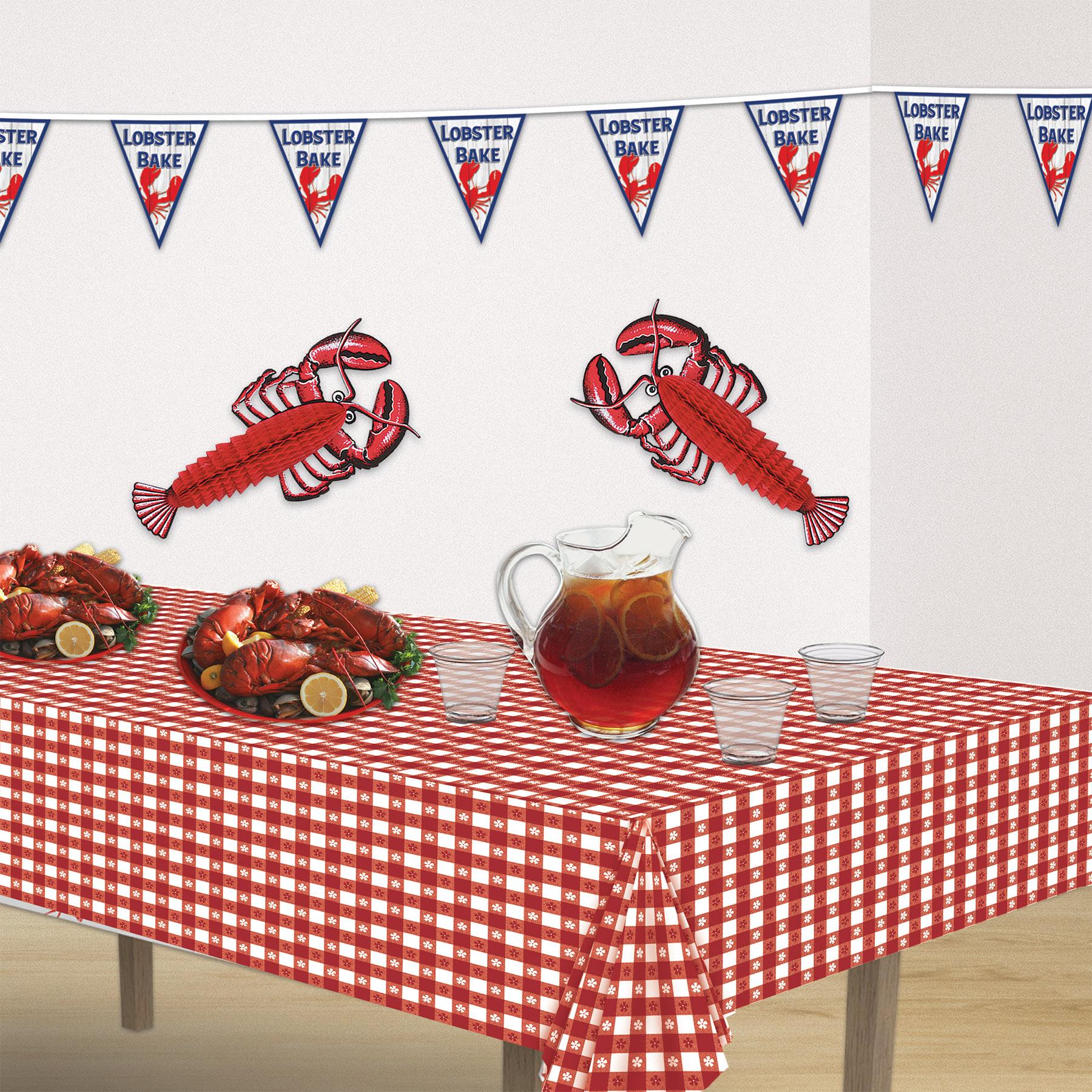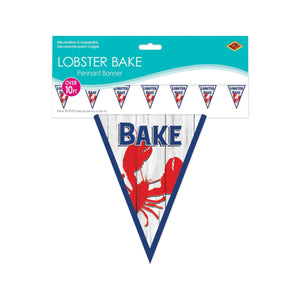 Make your luau stand out with this all-weather Lobster Bake Pennant Banner! Each package contains 12 9" x 10' 9" pennants, perfect for decorating any outdoor event.