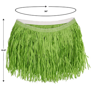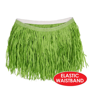 This Adult Mini Hula Skirt is the perfect way to complete your luau costume. It features a bright green color and measures 36"W x 16"L, making it just the right size for an adult. The lightweight polyester material is comfortable and won't weigh you down, so you can show off your hula moves all night. It's ideal for costume parties, beach days, or any time you want to feel like you're in paradise. The skirt comes in a convenient one-piece package and is sold in cases of twelve, making it easy to stock up for larger parties or events. With its bright color and Hawaiian-inspired design, this hula skirt will help you make memories that will last a lifetime. UPC: 034689192831.