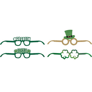 Our St. Patrick's Day Deluxe Paper Eyeglasses are perfect for any St. Patrick's Day celebration. These festive paper glasses measure 16" x 2.5" and come with four glasses designs per package and 6 packages in each case for a total of 24 glasses per case.. Each design features fun elements like shamrocks, leprechaun hats, and glitter and metallic foil accents, making them perfect for photo opportunities. With 24 glasses per case, you can make sure your celebration is complete with our other St. Patrick's Day party supplies. Our St. Patrick's Day Deluxe Paper Eyeglasses are made in China, and come with wholesale pricing and bulk quantities so that event planners, caterers, and home hostesses can make the most of the holiday. Get ready for a lucky and festive St. Patrick's Day with these Deluxe Paper Eyeglasses.