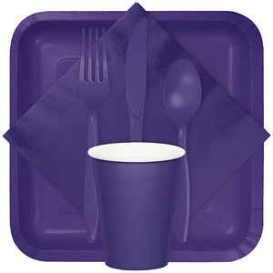 Add a touch of elegance to your next event with our Purple Assorted Plastic Cutlery! This heavy duty plastic cutlery is perfect for any occasion and will look great alongside patterned party tableware. Each package includes 24 pieces with 8 each of knives, forks and spoons. With 12 packages per case and 288 total pieces, you'll have plenty to go around. Plus, the convenience of disposing or recycling them after the event will make clean up a breeze. Get our Purple Assorted Plastic Cutlery for your next event and you won't be disappointed!
