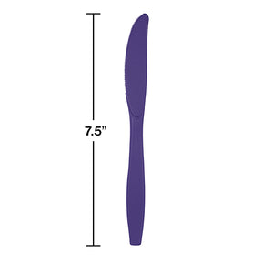Add a touch of elegance to your next event with our Purple Plastic Knives. This package of 24 heavy duty plastic knives is perfect for any occasion. The 7.5" size is perfect for serving up delicious delicacies, and the purple color adds a touch of sophistication. These knives are made of high quality plastic, so they are durable and can be easily thrown away or recycled after use. Our Purple Plastic Knives are competitively priced, making them perfect for restaurateurs, party planners, and savvy party hosts on a budget. Make your next event a success with our Purple Plastic Knives!