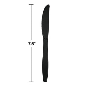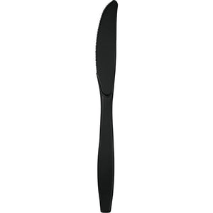 Our Black Velvet Plastic Knives are the perfect addition to any event! This heavy duty plastic cutlery is ideal for catered events, social gatherings, and large celebrations, and with 288 knives per case, you'll have plenty to last throughout the meal. These 7.5" plastic knives are strong enough to handle any meal, and the black velvet finish adds a stylish touch to any table setting. Plus, you won't have to worry about post-party clean-up, because each disposable knife can easily be recycled or discarded at the end of the event. Our Black Velvet Plastic Knives are a great way to complete your party tableware and accessories. With our competitive prices, you can stock up without breaking the bank.
