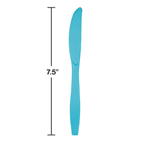 Make your next party or event a huge success with our Bermuda Blue Plastic Knives. These 7.5" heavy duty plastic knives come in packs of 24 and with 12 packs per case, you'll have a total of 288 knives. Perfect for any occasion, these Bermuda Blue Plastic Knives are a great way to make sure your guests have everything they need to enjoy their meal. Not only are they perfect for any event, but they are also affordable, so you can stick to your budget. Plus, their stylish Bermuda Blue color will add a touch of class and sophistication to any table setting. Get our Bermuda Blue Plastic Knives for your next party or event and make sure everyone has a great time!
