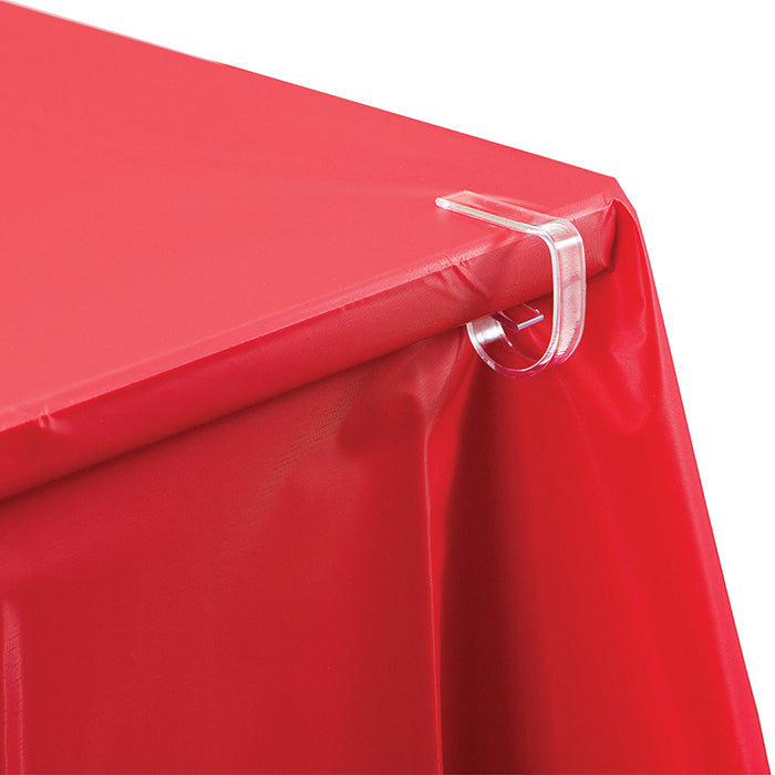 Make sure your next party stays in place with our Stay Put Clips. This pack of 72 clips is perfect for special events, catering services, or home party planners. Each clip measures 2" x 1.25" and is made of plastic, making them strong and durable. With a package of 6 clips and 12 packages per case, you'll have plenty for your event. These clips are a must-have for parties, birthdays, and other special occasions. Keep your tablecloths and decorations in place with these Stay Put Clips.