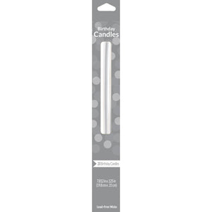 Brighten up your celebration with our Party Candle White! This package of 20 candles is perfect for topping off any cake or other dessert. Each candle measures.25" x 8" and is made of wax for a long-lasting burn. The white color makes them easy to match with other solid color party supplies. Add a festive touch to your event with these White Party Candles. They're great for event planners, caterers, and home hostesses alike. Make your celebration complete with our Party Candle White!