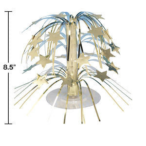 This Gold Foil Cascading Centerpiece is the perfect addition to any celebration. With a package of one, this centerpiece measures 8.5" tall and is made of foil cutouts of green stars that cascade downwards from shooting strands. It's perfect for event planners, caterers, and home hostesses alike, and is sure to make the table the center of all the action. This centerpiece is great for general occasion parties and is the perfect match for other green party supplies. Approximate Dimensions: 8 in x 8 in x 8.5 in. Make your celebration memorable with this Gold Foil Cascading Centerpiece.