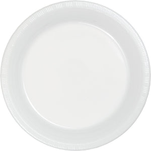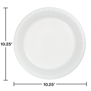 These White Prem Plastic Banquet Plates are perfect for any special celebration. The 10.25 inch plates are constructed of premium heavy weight plastic with a flexible center and rigid outer lip, allowing for service of a slightly heartier buffet fare than standard paper plates. The plates are packaged 20 each and are #6 recyclable plastic. They are a solid white color, perfect for any party or event. With the White Banquet Plates, you can upgrade any celebration with ease. They are easy to dispose of and recycle at the end of the event. Get one package containing (20) White Prem Plastic Banquet Plates and make your event a success!