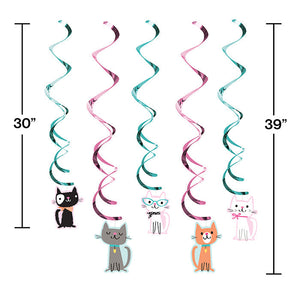 Make your next kid's birthday party one to remember with the Purr-fect Cat Party Dizzy Danglers. These adorable 39" danglers feature an assortment of cute kittens, perfect for any cat-themed party. Each package contains 5 danglers for a total of 30 danglers per case. Made from durable plastic and paper, these Purr-fect Cat Party Dizzy Danglers are sure to last throughout the party. Bulk quantities are available at discount prices, making them great for party planners, catering services, or home party planners. Make your kid's birthday party extra special with the Purr-fect Cat Party Dizzy Danglers.