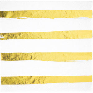 192/Case Bulk White and Gold Foil Striped Luncheon Napkins
