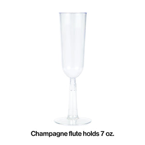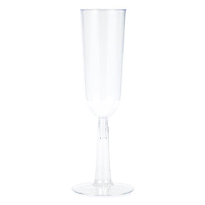 These Clear Plastic Champagne Flutes are perfect for any occasion. With a 7 oz capacity and 4 ct, you'll have plenty of glasses for your guests. Made from sturdy plastic, these flutes feature an easy-to-assemble two-piece construction that makes storage a breeze. With no worries over broken glass or the hassle of washing glasses, these flutes are the perfect addition to your business or event. Add convenience to your party with these Clear Plastic Champagne Flutes.
