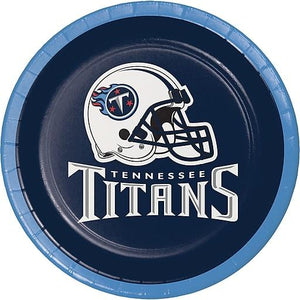Make your Tennessee Titans party unforgettable with these wholesale Tennessee Titans Dessert Plates. Each plate features the team colors and logo, making it the perfect addition to your Tennessee Titans party supplies. These heavyweight paperboard plates are perfect for desserts, finger food, and appetizers during the big game. With one package containing 8 plates, you can stock up on NFL paper plates before the season is over. Approximate Dimensions: 6.875 in x 6.875 in. Ships within one business day from Illinois. Get your Tennessee Titans Party Supplies today!