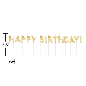 Make your birthday cake the star of the show with these Gold Happy Birthday Pick Candles. Featuring the phrase "Happy Birthday" in a beautiful gold color, these candles will bring a touch of elegance to your cake. Measuring.5" x 2.5", these candles pair perfectly with any other party decorations. With great quality and discount pricing, these Gold Happy Birthday Pick Candles are perfect for event planners, caterers, and home hostesses. Crafted from wax, these candles are sure to make your birthday celebration shine. Add a special touch to your cake with these Gold Happy Birthday Pick Candles.