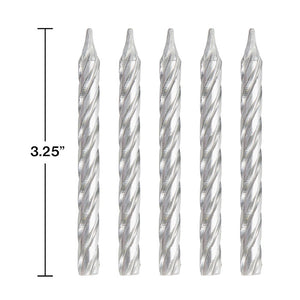Bring a touch of elegance to your birthday celebration with these Silver Spiral Candles. These 24 candles feature an elegant silver design and measure 2.25" in size. Perfect for event planners, caterers, and home hostesses, these candles are the perfect addition to any birthday party decorations and accessories. With discount pricing and great quality, these Silver Spiral Candles will make your dreams come true.