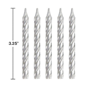 Bring the sparkle and shine to your special day with our Silver Birthday Candles. These 2.25" wax candles come in packs of 24 with 12 packs per case, totaling 288 candles per case. Perfect for any birthday celebration, these silver candles are sure to make your day even more special. Whether you're hosting a birthday party or providing decorations for a catering service, these candles are the perfect addition. Get your hands on these elegant silver candles and make your birthday dreams come true. Shop our Silver Birthday Candles for the perfect birthday decorations and accessories.
