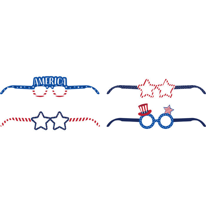 Celebrate the Fourth of July in style with our Patriotic Fourth of July Paper Eyeglasses! These 16" x 2.5" paper glasses come in packs of four and are perfect for creating photo opportunities at your party. Each pack features four unique patriotic designs, perfect for a festive holiday celebration. With an unbeatable bulk price of 24 eyeglasses per case, they're perfect for any party planner or catering service. Bring everyone together and make sure you get the best photos of your Fourth of July celebration with our Patriotic Fourth of July Paper Eyeglasses!