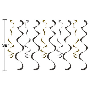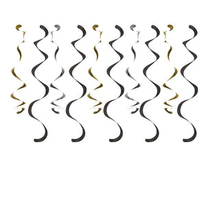 Let the Roaring 20s come alive with our Roaring 20s Dizzy Danglers! This set of 60 plastic danglers, featuring black, gold, and silver designs, are perfect for adding a special touch to any celebration. With 10 danglers in each of the 6 packages, each dangler is 39" in length, and can be used to decorate any room. Let your party sparkle with our Roaring 20s Dizzy Danglers! Mix and match with other Roaring 20s themed tableware to create the perfect atmosphere for your celebration.