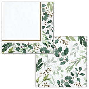 Add a touch of elegance to your wedding or bridal shower with these Eucalyptus Greens Beverage Napkins. These 2-ply tissue napkins come in a package of 16 and measure 5" x 5" when folded. The ivory color and eucalyptus branch accents create a beautiful atmosphere for your special event. Coordinate with other Eucalyptus Greens Tableware Theme items for a complete look. Our Eucalyptus Greens Beverage Napkins are made in the USA and perfect for event planners, caterers, and home hostesses alike. For an even more luxurious look, pair with Glittering Gold tableware.
