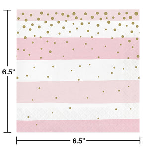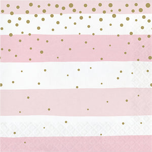 Pink Gold Celebration Stripes Luncheon Napkin (16/Pkg)