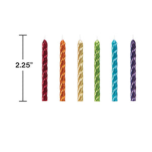 Make your birthday spectacular with these Rainbow Metallic Spiral Candles! With twelve packages containing twenty-four candles each, you'll have 288 candles in total to make your celebration a success. Measuring 2.25", these wax and cotton-wick candles feature a metallic rainbow of colors that are sure to make your birthday wish come true. Perfect for any party planner, catering service, or home party planner, our Rainbow Metallic Spiral Candles are a great addition to any birthday party decorations and accessories. With our discount pricing on bulk quantities, make your birthday wish the best one yet with these Rainbow Metallic Spiral Candles!