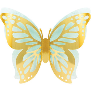 Create a beautiful and unique focal point at your next celebration with our Golden Butterfly Wall Decor. This 3ct set includes 18 butterflies in three sizes: Pink Butterflies 8.5"x12", Purple Butterflies 9.75"x12.25", and Mint Butterflies: 9.5"x12.5". The butterflies fan out to a 3D design, adding a shimmering effect to your party space. Perfect for event planners, caterers, and home hostesses alike, our Golden Butterfly Wall Decor is a great way to complete the look of your Butterfly Shimmer Birthday Party Theme. Add the perfect finishing touch to your Kids Birthday Themes with this New in 2022 product.