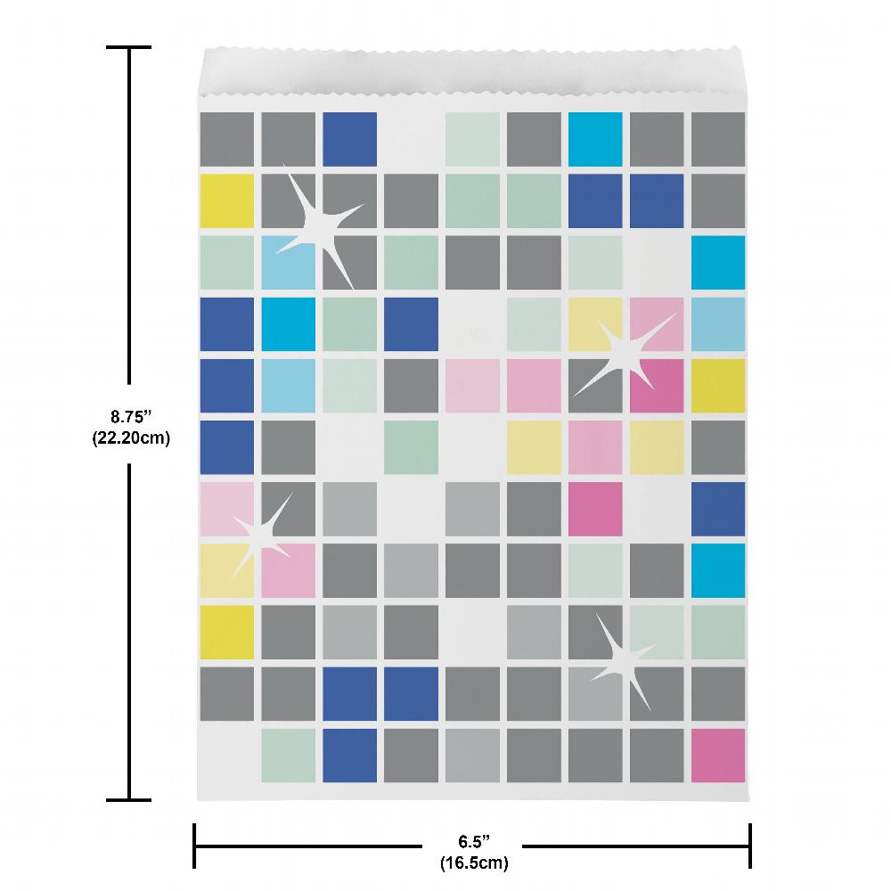 Add a special touch to your celebration with the Birthday Beats Paper Treat Bags, Large (8 per Pkg). These treat bags blend practicality with stylish design, perfect for holding party favors, treats, and goodies. These treat bags measure 8.75 Inches Tall x 6.5 Inches Wide. Their vibrant patterns and sturdy construction make them versatile enough for any event, from birthdays to themed parties. Indispensable for party planners, these bags not only enhance your decor but also provide a delightful surprise for your guests. Make your celebration memorable with these chic and functional treat bags.