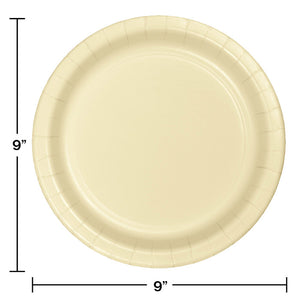 Add a touch of sophistication to your next event with the Ivory Paper Plates. This package of 24 heavyweight paperboard plates is perfect for serving potluck meals, fancier entrees, or even a casual backyard barbecue. The 8.75-inch round plates come in a neutral ivory color that can be used as a base color for any event. Pair these plates with matching printed theme products for a stunning display. With the Ivory Paper Plates, you can decorate your table with charming style at your catered events or gatherings. Get one package containing 24 Ivory Paper Plates for a great price.