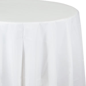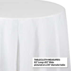 This White Round Plastic Tablecover is the perfect addition to any event. It is 82 inches in diameter and made of mediumweight plastic, making it perfect for both indoor and outdoor use. It can easily accommodate 6-8 foot table rounds and is disposable, making cleanup a breeze. The solid white color makes it the perfect addition to any party or event, and it is packaged individually. With its easy setup and convenient disposal, this White Round Plastic Tablecover is the perfect choice for any caterer, event planner, or hostess.