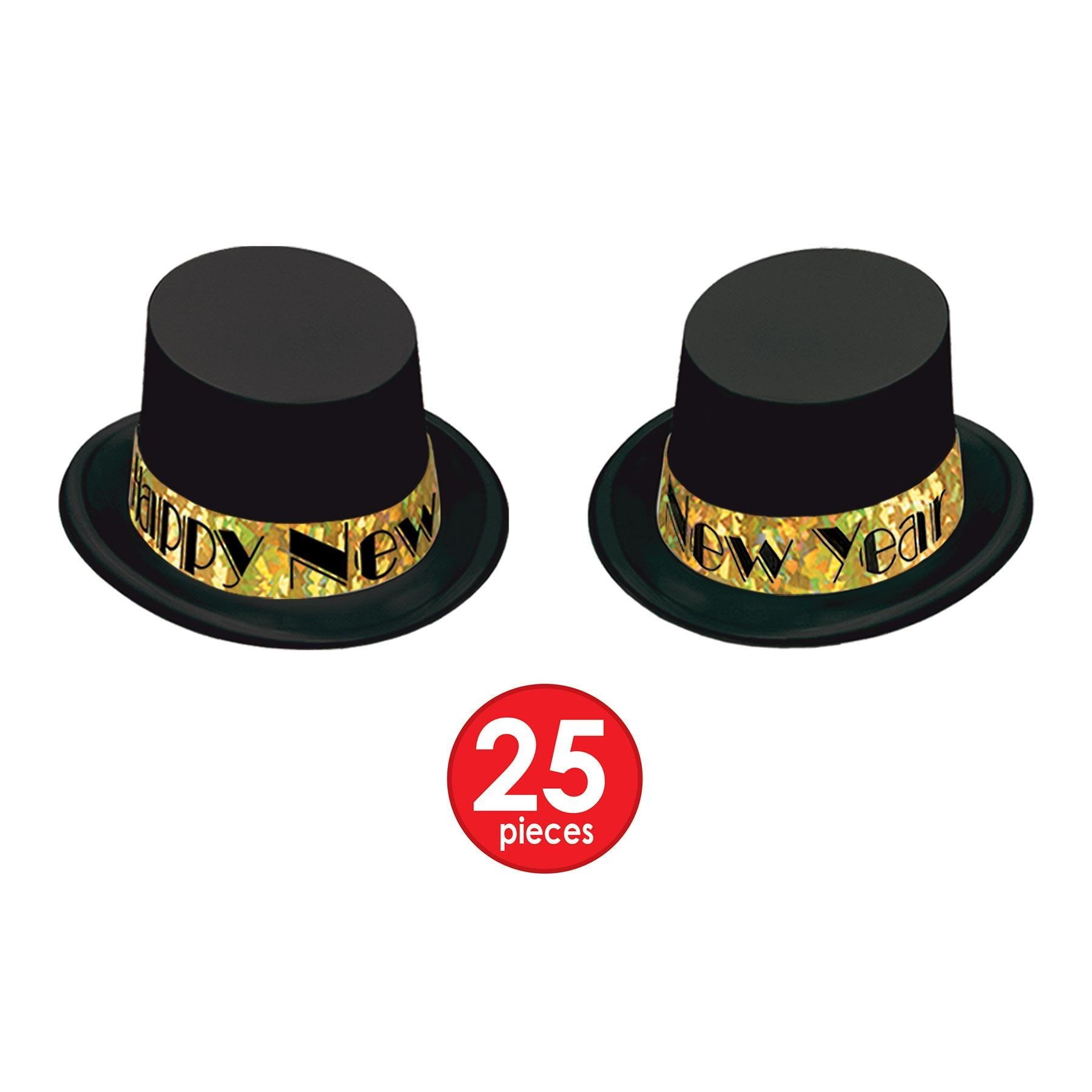 Prepare for the biggest night of the year with the Gold Top Hat New Year's Eve Party Kit for 50 People from BulkPartySupplies.com! This dazzling kit is perfect for large gatherings, ensuring your party is filled with elegance and fun. With velour toppers featuring printed prismatic bands, glittered plumed tiaras, prismatic horns, and party bead necklaces, your guests will feel like royalty as they celebrate. With quick shipping from our Pennsylvania warehouse, you can focus on the fun and festivities while we take care of the supplies. Make your New Year’s Eve unforgettable with the Gold Top Hat Party Kit!
