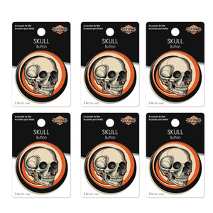 Vintage Halloween Skull Button -Orange - Bulk 6 Pack