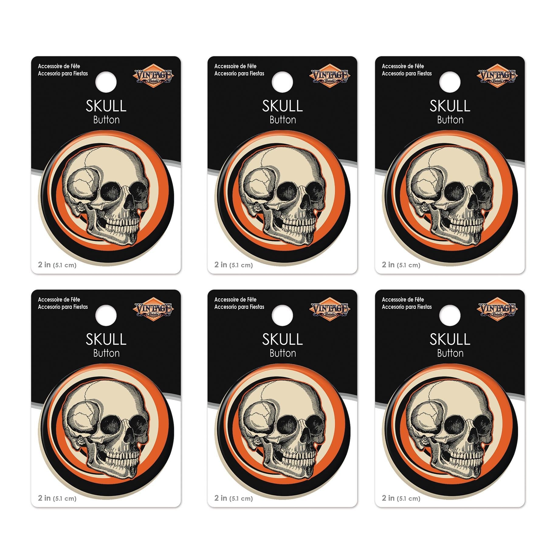 Product Description: Our Vintage Halloween Skull Button is an ideal way to decorate your Halloween party this year. This package of 6 buttons feature a classic skull design with a vintage feel. Each button measures 2 inches, making them the perfect size for wearing or displaying. The Halloween-Vintage design is perfect for Diploma Mill Awards and Printed Buttons. This item is part of our Halloween Party Supplies collection of party decorations and ships from our Pennsylvania warehouse within one business day. Make your Halloween party stand out this year with our Vintage Halloween Skull Button (Case of 6).