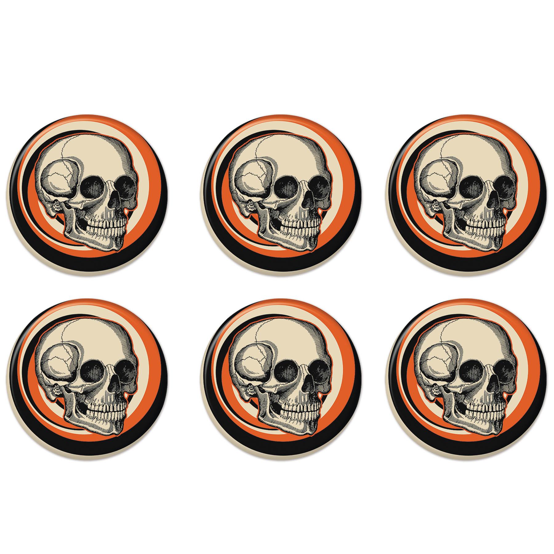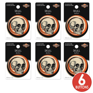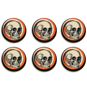 6 Pack Bulk Vintage Halloween Skull Button -Orange